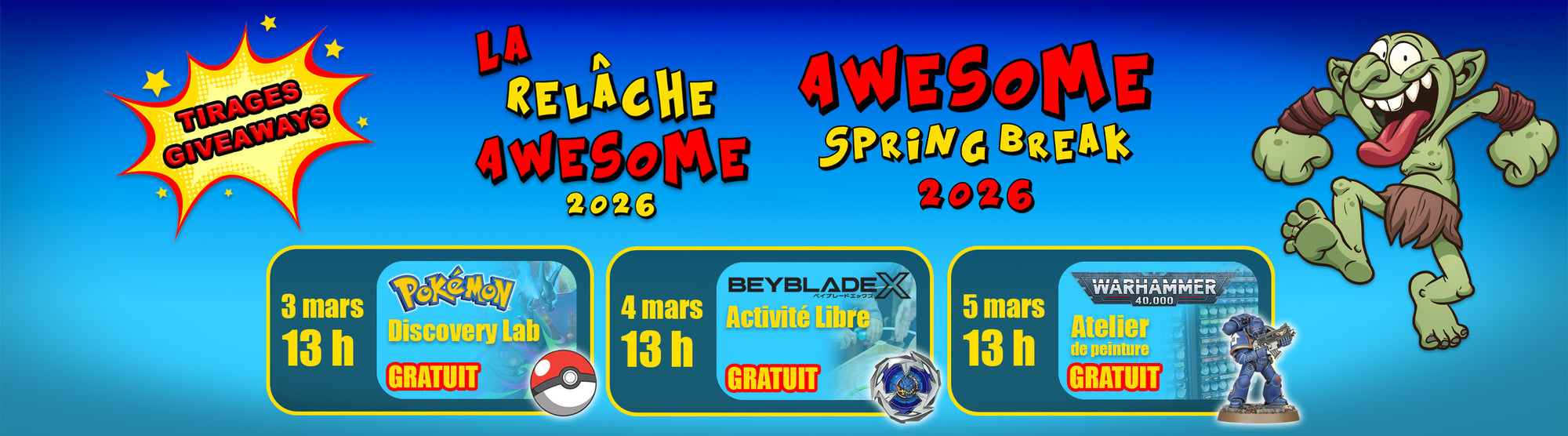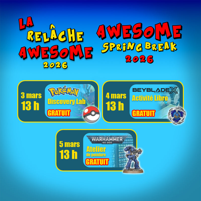 Boutique AwesomeIn stockVenez participer au tournoi Beyblade X de la Boutique Awesome Dimanche le 15 Février 2026!!👉 Pour mieux servir notre communauté grandissante, nous ...