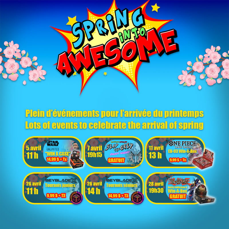 HasbroIn stock🌸 Tournoi Beyblade X – Spring Into Awesome! Avril 🌸 C’est le Spring Into Awesome à la Boutique Awesome! Pour célébrer, nous aurons exceptionnelleme...