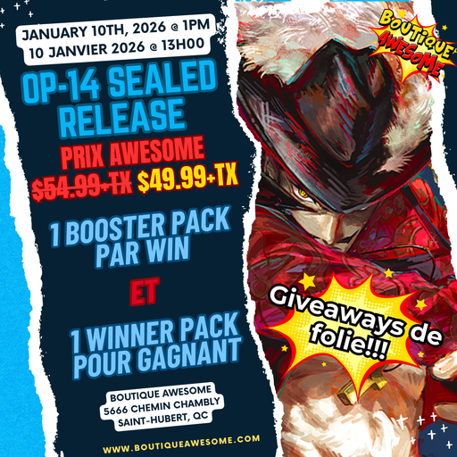 BA EventsIn stockPlayers will build their decks from 6 OP 14 packsYou may bring your own leader (including those from previous sets) to use in the event.Please brin...