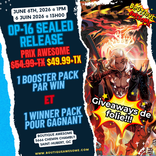BA EventsIn stockPlayers will build their decks from 6 OP-16 packsYou may bring your own leader (including those from previous sets) to use in the event.Please brin...