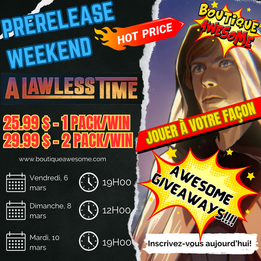Boutique AwesomeLow stockThe next Store Championship is coming up fast at Boutique Awesome!Play an AWESOME Standard tournament and win Lorwyn Eclipsed Play Boosters! There ...