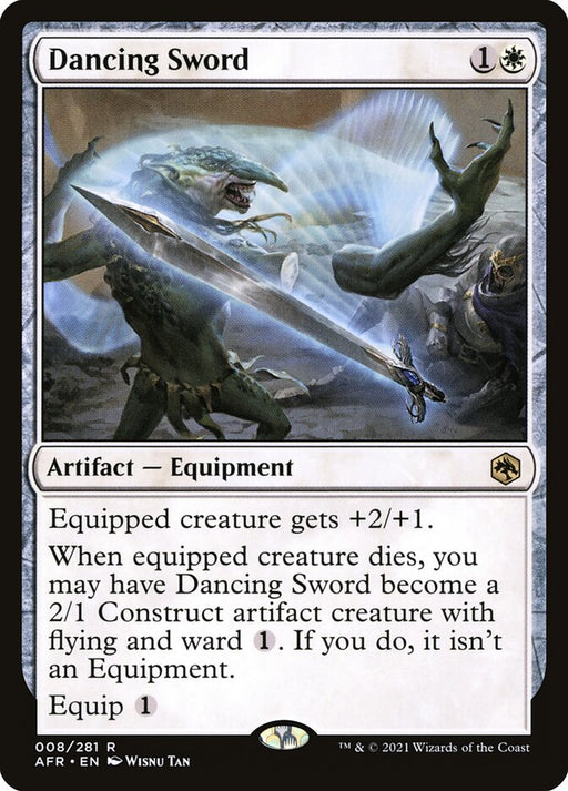 Adventures in the Forgotten RealmsOut of stockEquipped creature gets +2/+1. When equipped creature dies, you may have Dancing Sword become a 2/1 Construct artifact creature with flying and ward...