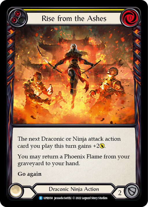 UprisingLow stockThe next Draconic or Ninja attack action card you play this turn gains +2 [attack]. You may return a Phoenix Flame from your graveyard to your han...