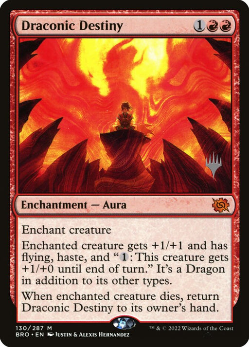 The Brothers' War PromosLow stockEnchant creature Enchanted creature gets +1/+1 and has flying, haste, and "{1}: This creature gets +1/+0 until end of turn." It's a Dragon in addit...