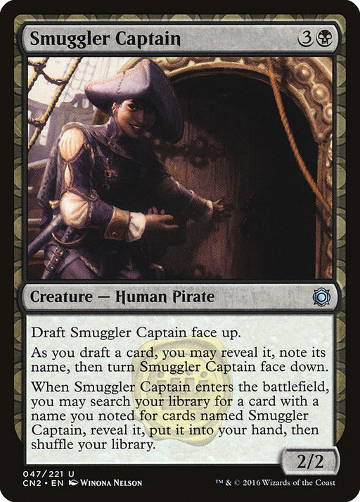 Conspiracy: Take the CrownIn stockDraft Smuggler Captain face up. As you draft a card, you may reveal it, note its name, then turn Smuggler Captain face down. When Smuggler Captain ...