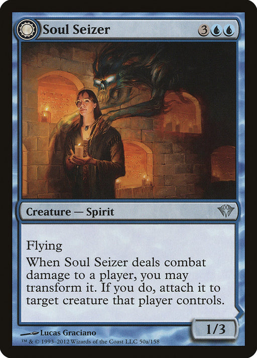 Dark AscensionIn stockFlying When Soul Seizer deals combat damage to a player, you may transform it. If you do, attach it to target creature that player controls.