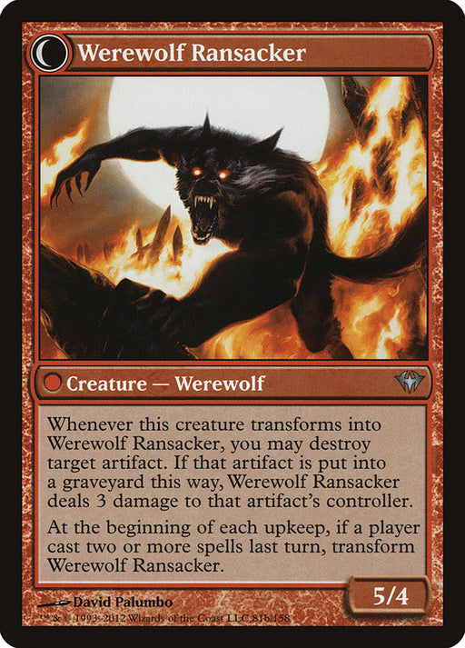 Dark AscensionIn stockWhenever this creature transforms into Werewolf Ransacker, you may destroy target artifact. If that artifact is put into a graveyard this way, Were...