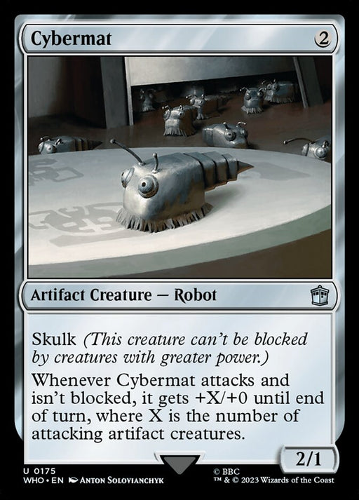 Doctor WhoLow stockSkulk (This creature can't be blocked by creatures with greater power.) Whenever Cybermat attacks and isn't blocked, it gets +X/+0 until end of tur...