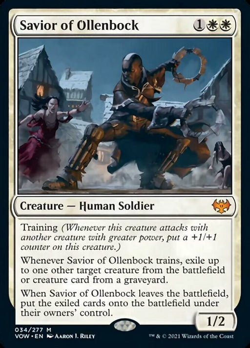 Innistrad: Crimson VowIn stockTraining (Whenever this creature attacks with another creature with greater power, put a +1/+1 counter on this creature.) Whenever Savior of Ollenb...