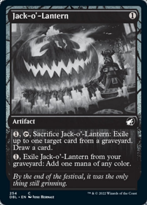 Innistrad: Double FeatureLow stock{1}, {T}, Sacrifice Jack-o'-Lantern: Exile up to one target card from a graveyard. Draw a card. {1}, Exile Jack-o'-Lantern from your graveyard: Add...