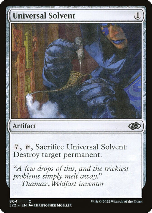 Jumpstart 2022Low stock{7}, {T}, Sacrifice Universal Solvent: Destroy target permanent.
