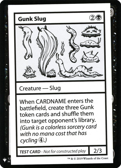 Mystery Booster Playtest Cards 2019Low stockWhen Gunk Slug enters the battlefield, create three Gunk token cards and shuffle them into target opponent's library. (Gunk is a colorless sorcery ...