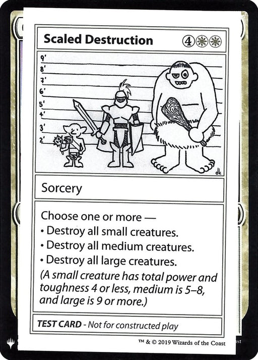 Mystery Booster Playtest Cards 2019Low stockChoose one or more — • Destroy all small creatures. • Destroy all medium creatures. • Destroy all large creatures. (A small creature has total powe...