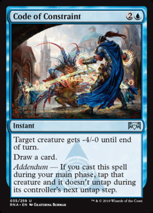 Ravnica AllegianceIn stockTarget creature gets -4/-0 until end of turn. Draw a card. Addendum — If you cast this spell during your main phase, tap that creature and it doesn...