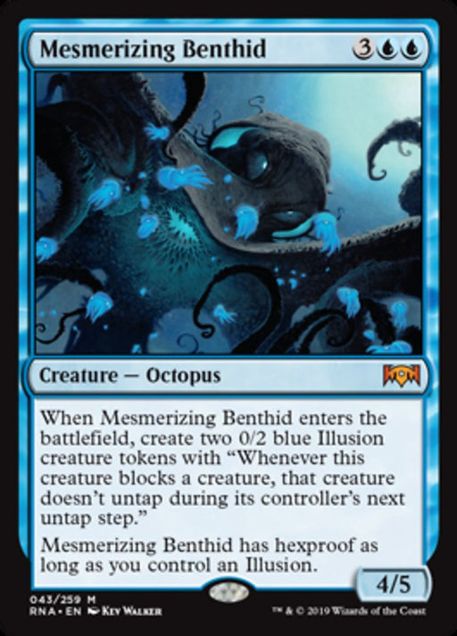 Ravnica AllegianceIn stockWhen Mesmerizing Benthid enters the battlefield, create two 0/2 blue Illusion creature tokens with "Whenever this creature blocks a creature, that ...