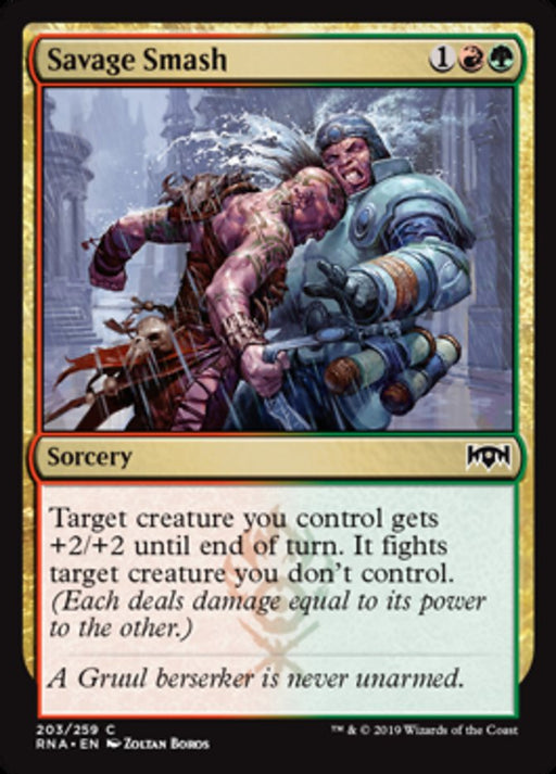Ravnica AllegianceIn stockTarget creature you control gets +2/+2 until end of turn. It fights target creature you don't control. (Each deals damage equal to its power to the...