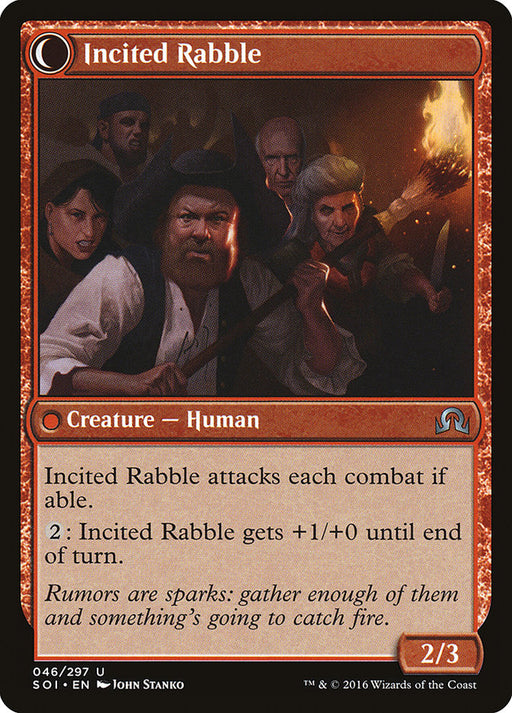 Shadows over InnistradIn stockIncited Rabble attacks each combat if able. {2}: Incited Rabble gets +1/+0 until end of turn.