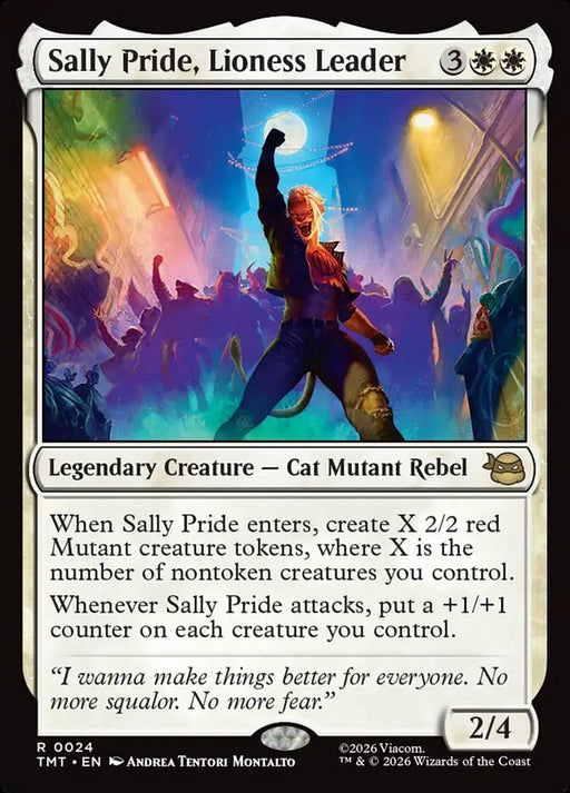 Teenage Mutant Ninja TurtlesLow stockWhen Sally Pride enters, create X 2/2 red Mutant creature tokens, where X is the number of nontoken creatures you control. Whenever Sally Pride att...