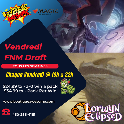 BA Events🎉 MTG Friday Night Magic Drafts @ Boutique Awesome 🎉Every Friday – 7 PM Pick your play style: $24.99 + tax – Go 3-0 and win a Foil Promo Pack ...