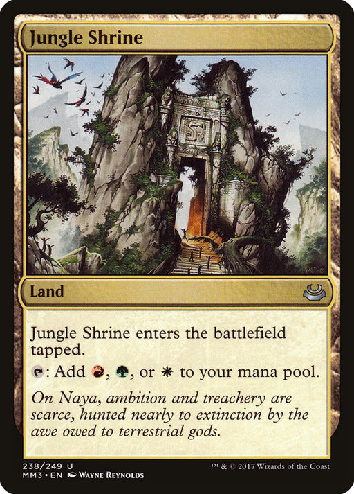 Modern Masters 2017Out of stockJungle Shrine enters the battlefield tapped. {T}: Add {R}, {G}, or {W}.