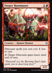 IxalanIn stockDinosaur spells you cast cost {1} less to cast. {T}: Target Dinosaur gains haste until end of turn.