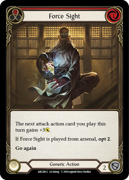 Arcane RisingOut of stockThe next attack action card you play this turn gains +3 [Attack]. If Force Sight is played from arsenal, **opt 2**. *(Look at the top 2 cards of y...