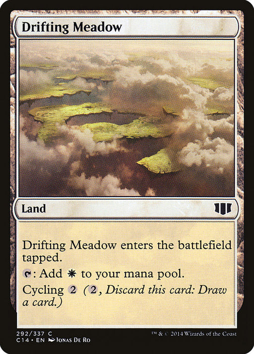 Commander 2014Out of stockDrifting Meadow enters the battlefield tapped. {T}: Add {W}. Cycling {2} ({2}, Discard this card: Draw a card.)