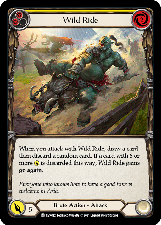 EverfestOut of stockWhen you attack with Wild Ride, draw a card then discard a random card. If a card with 6 or more [Power] is discarded this way, Wild Ride gains **g...