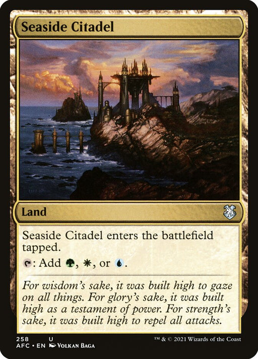 Forgotten Realms CommanderOut of stockSeaside Citadel enters the battlefield tapped. {T}: Add {G}, {W}, or {U}.