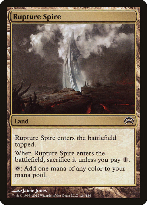 Planechase 2012Low stockRupture Spire enters the battlefield tapped. When Rupture Spire enters the battlefield, sacrifice it unless you pay {1}. {T}: Add one mana of any c...