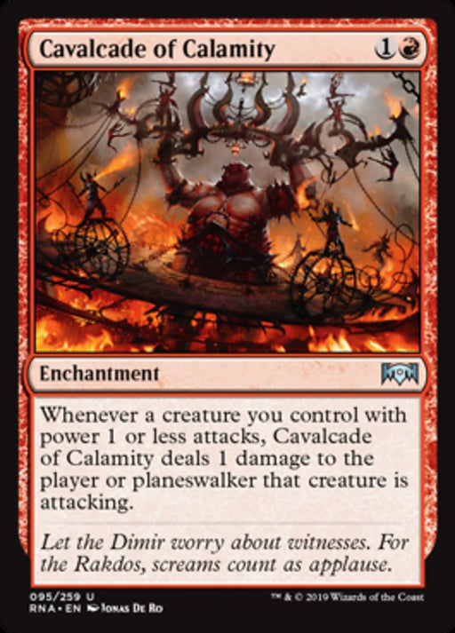 Ravnica AllegianceIn stockWhenever a creature you control with power 1 or less attacks, Cavalcade of Calamity deals 1 damage to the player or planeswalker that creature is a...