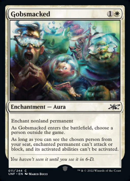 UnfinityLow stockEnchant nonland permanent As Gobsmacked enters the battlefield, choose a person outside the game. As long as you can see the chosen person from you...