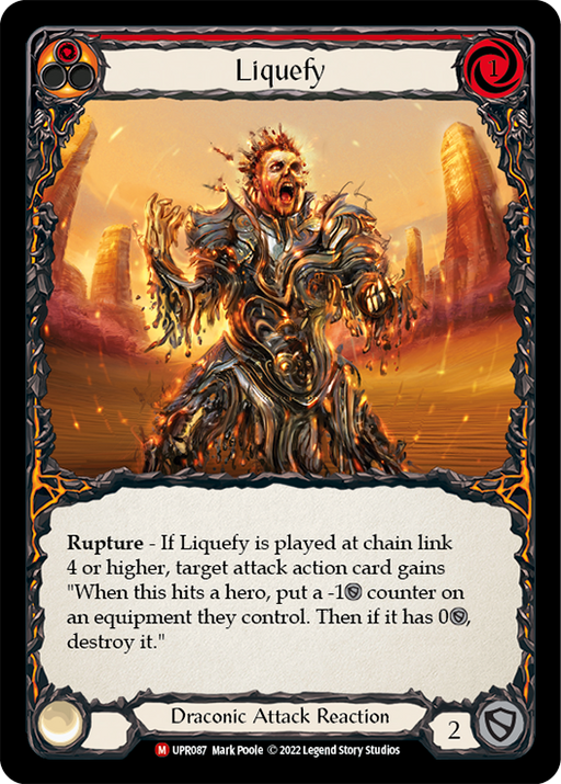 UprisingOut of stock**Rupture** - If Liquefy is playted at chain link 4 or higher, target attack action card gains "When this hits a hero, put a -1 [defense] counter o...
