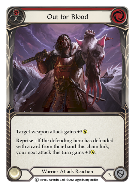 History Pack 1Low stockTarget weapon attack gains +3[attack]. **Reprise** - If the defending hero has defended with a card from their hand this chain link, the attack ga...