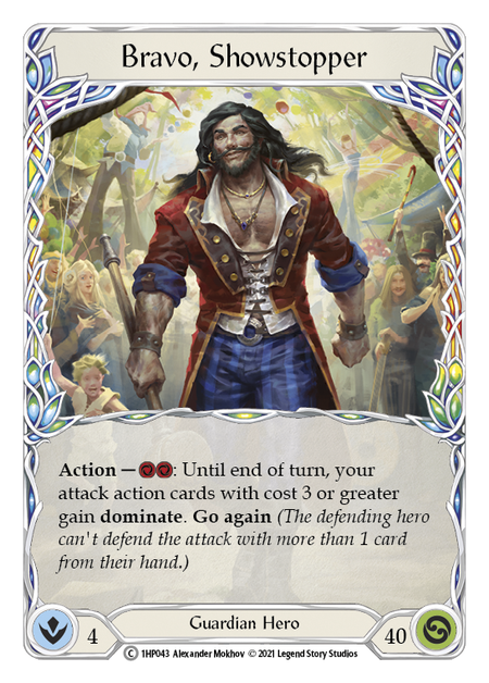 History Pack 1Low stock**Action** - [2 Resource]: Until end of turn, your attack action cards with cost [3 Resource] or greater gain **dominate**. **Go again** *(The defe...