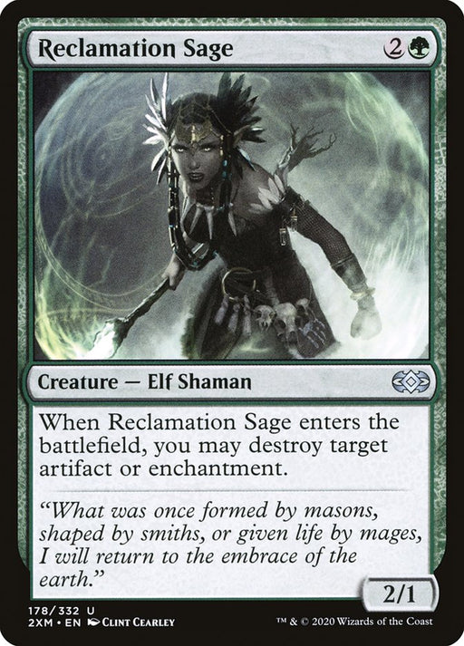 Double MastersLow stockWhen Reclamation Sage enters the battlefield, you may destroy target artifact or enchantment.