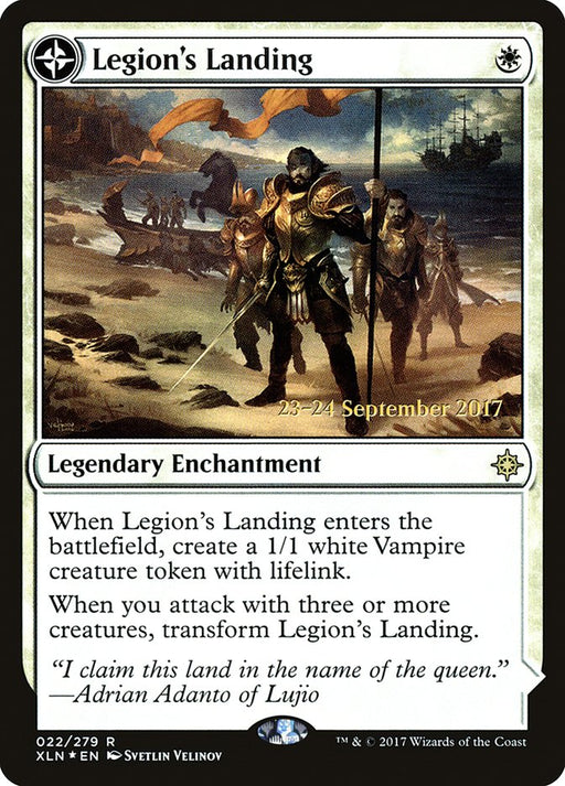 Ixalan PromosOut of stockWhen Legion's Landing enters the battlefield, create a 1/1 white Vampire creature token with lifelink. When you attack with three or more creature...