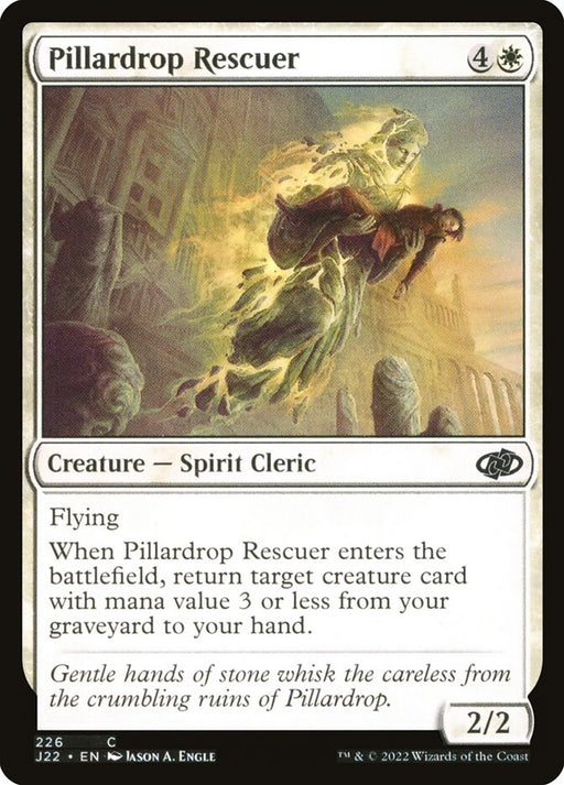 Jumpstart 2022Low stockFlying When Pillardrop Rescuer enters the battlefield, return target creature card with mana value 3 or less from your graveyard to your hand.