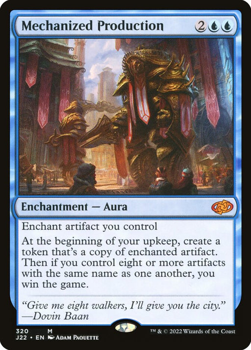 Jumpstart 2022Out of stockEnchant artifact you control At the beginning of your upkeep, create a token that's a copy of enchanted artifact. Then if you control eight or more...