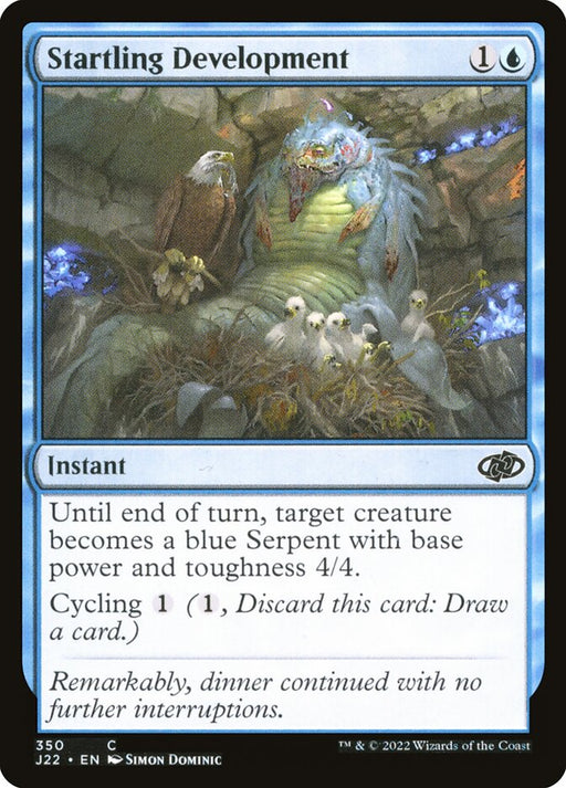 Jumpstart 2022Out of stockUntil end of turn, target creature becomes a blue Serpent with base power and toughness 4/4. Cycling {1} ({1}, Discard this card: Draw a card.)