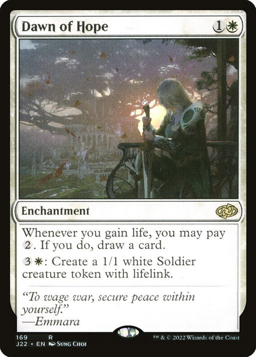 Jumpstart 2022Out of stockWhenever you gain life, you may pay {2}. If you do, draw a card. {3}{W}: Create a 1/1 white Soldier creature token with lifelink.