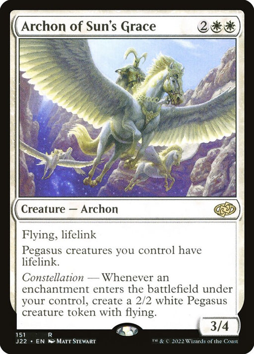 Jumpstart 2022Out of stockFlying, lifelink Pegasus creatures you control have lifelink. Constellation — Whenever an enchantment enters the battlefield under your control, cr...