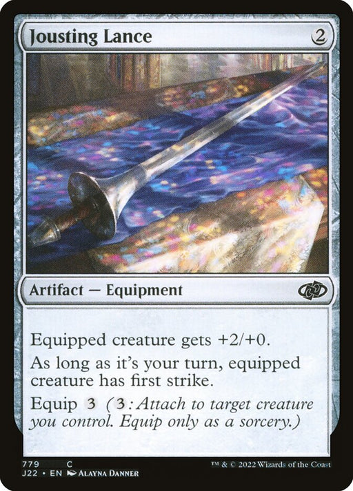 Jumpstart 2022Low stockEquipped creature gets +2/+0. As long as it's your turn, equipped creature has first strike. Equip {3} ({3}: Attach to target creature you control....