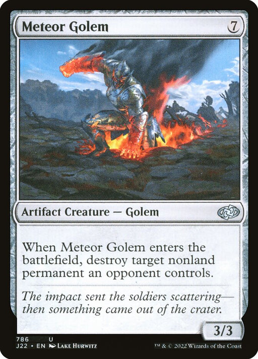 Jumpstart 2022Low stockWhen Meteor Golem enters the battlefield, destroy target nonland permanent an opponent controls.