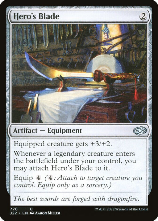 Jumpstart 2022Low stockEquipped creature gets +3/+2. Whenever a legendary creature enters the battlefield under your control, you may attach Hero's Blade to it. Equip {4}...