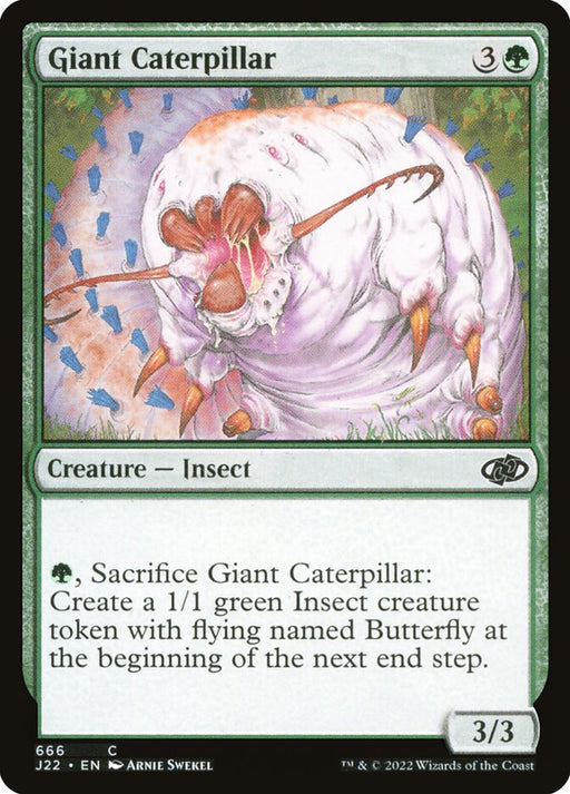 Jumpstart 2022Low stock{G}, Sacrifice Giant Caterpillar: Create a 1/1 green Insect creature token with flying named Butterfly at the beginning of the next end step.