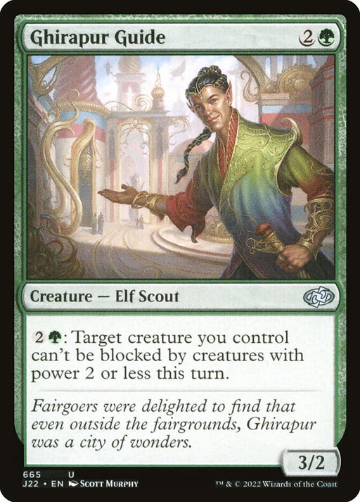 Jumpstart 2022Low stock{2}{G}: Target creature you control can't be blocked by creatures with power 2 or less this turn.