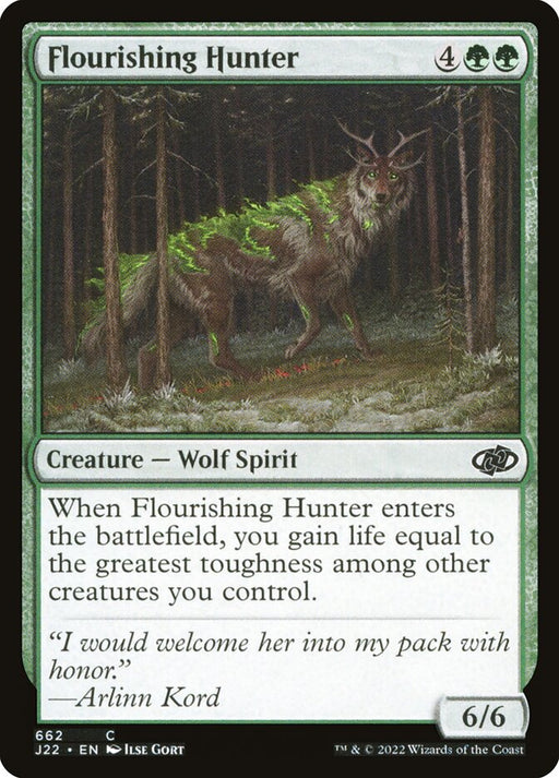 Jumpstart 2022Low stockWhen Flourishing Hunter enters the battlefield, you gain life equal to the greatest toughness among other creatures you control.