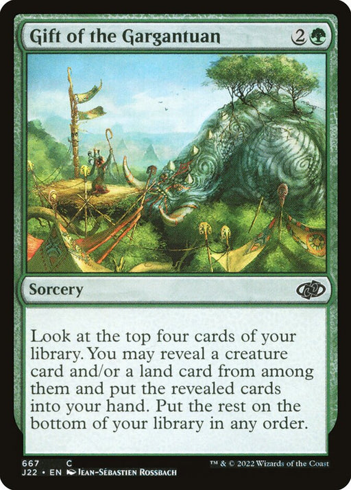 Jumpstart 2022Low stockLook at the top four cards of your library. You may reveal a creature card and/or a land card from among them and put the revealed cards into your ...