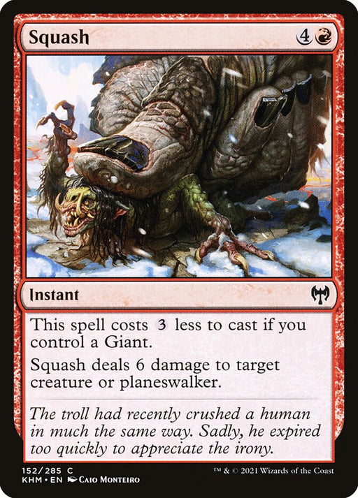 KaldheimLow stockThis spell costs {3} less to cast if you control a Giant. Squash deals 6 damage to target creature or planeswalker.